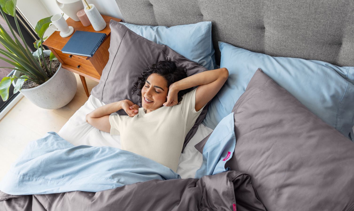 Do you sleep with the windows open? Multiple fans blowing in your face? Air conditioning on full blast? Our body temperature naturally fluctuates at night because it’s linked to our circadian rhythm.⁴ If you find yourself running hot while you sleep, you may be especially sensitive to these changes. Let’s uncover whether foam or spring mattresses are better for a cool night’s sleep.