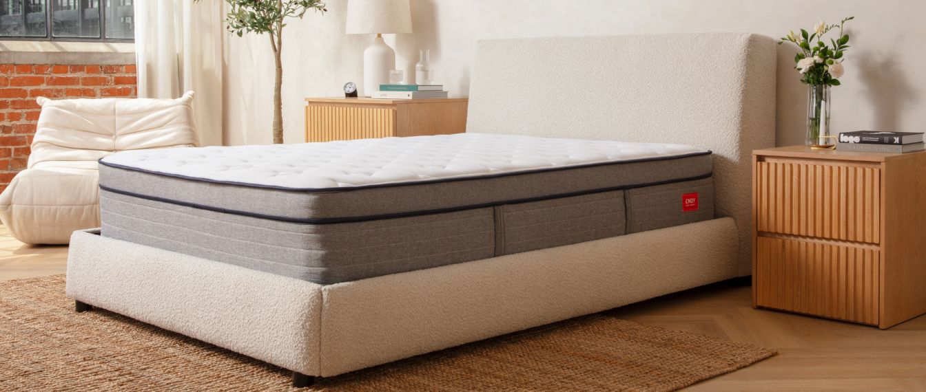 The Endy Original Mattress is a solid all-foam option at a lower price point. Its open-cell foam layers are designed for better airflow and breathability than traditional memory foam, keeping you cooler through the night. At 6–6.5/10, it provides firm enough support for back sleepers and most side sleepers while relieving pressure points at the hips and shoulders. Endy Comfort Foam is temperature-insensitive, meaning it maintains a consistent feel year-round — important in Canada’s variable climate.- Type: All-foam