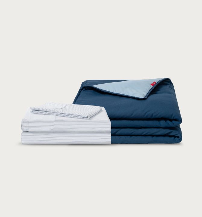 Tailles double, grand, très grand, très grand Cal et grand court (VR) : 1 housse de couette et 2 couvre-oreillers, 1 drap contour, 1 drap plat, 2 taies d’oreiller.